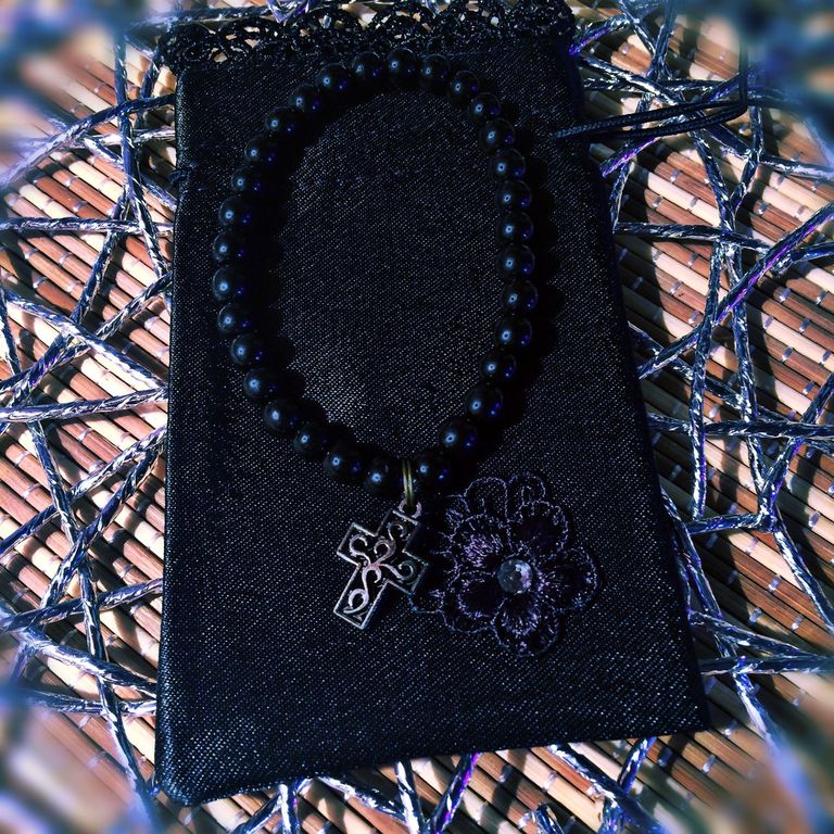 Амулет - оберег из бусин натурального камня гагат.