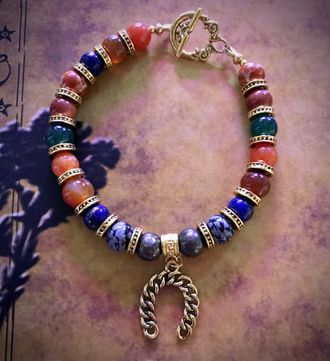 Камни в амулете; яшма, сердолик, пирит, лазурит и агат.