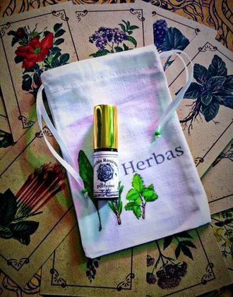 "12 растений Розенкрейцеров" магические духи 5 мл спрей флакон + 12 авторских карточек ручной работы, с описанием магических свойств всех растений в мешочке ручной работы.