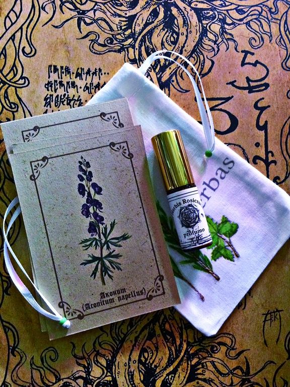 Духи вместе с карточками и флакончиком духов 5 мл или 10 мл упакованы в мешочек ручной работы (мешочки могут отличаться от представленного на фото, в зависимости от наличия)