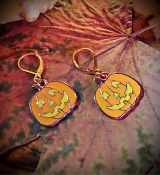 Забавные хеллоуинские сережки! Детализированные, аккуратные, металлические, покрытые эмалью. Односторонние, другая сторона просто позолоченная, фактурная - 2 фото.