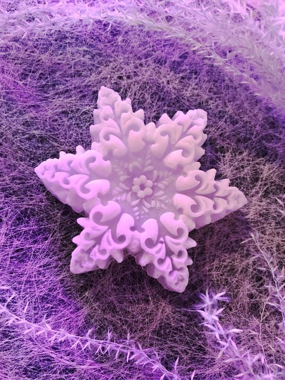 Мыльце авторское в форме ажурной двухцветной снежинки, с нежным колдовским ароматом мартини - лаванда - мята!
