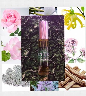 Яркие, звонкие верхние ноты озоновой прохлады, лимонной мяты и целого букета душицы сменяются теплой розовой пудрой и мерцающих цветов иланга, дополняют композицию ноты альдегидных мхов, сливочная древесность пало санто, пряный шалфей и смола стиракса.