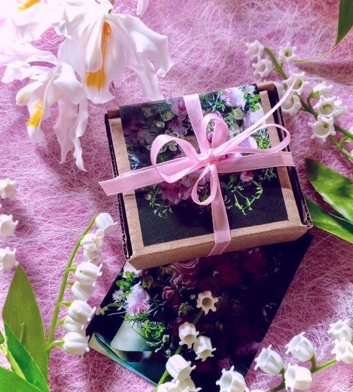 стеклянных фиолках пробниках, оформлены в коробочку с красивой весенней наклеечкой и ленточкой + мини открыточкой.