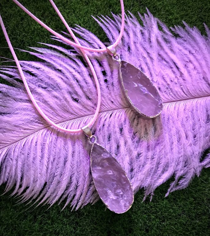 Кулоны с необработанным розовым кварцем.